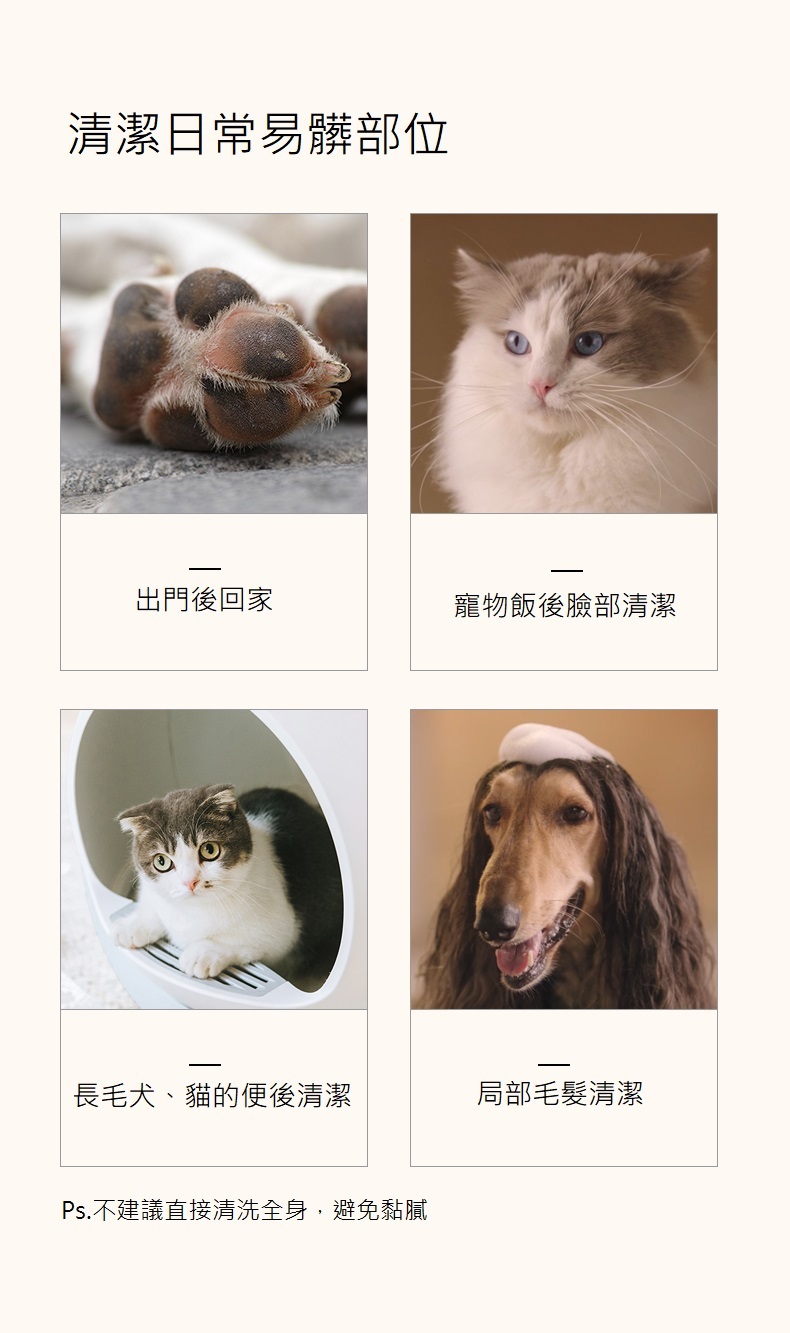 局部清潔敲方便,散步後的腳掌、飯後的嘴角,迅速整潔