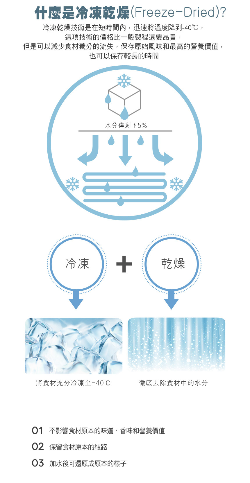 急速冷凍乾燥技術,短時間迅速減少養分流失,